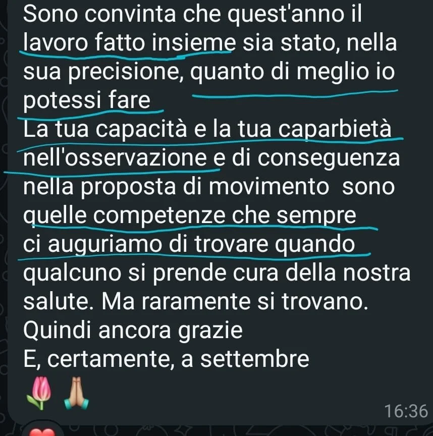Da oltre 15 anni aiuto le persone a ridurre dolori, ritrovare equilibrio e migliorare la qualità della vita attraverso un approccio terapeutico e personalizzato al movimento.
